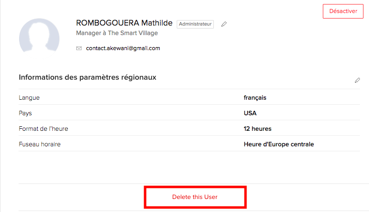 - Vous ne pouvez pas annuler l'action. Si vous ne voulez pas que le membre accède au CRM mais que vous ne soyez pas sûr de vouloir le supprimer, vous pouvez le désactiver.