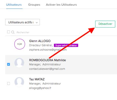 - Seul le super administrateur de votre compte peut supprimer un utilisateur.