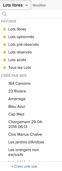 Les affichages de la liste personnalisée marqués comme favoris seront listés en premier dans la liste déroulant de la vue de liste.